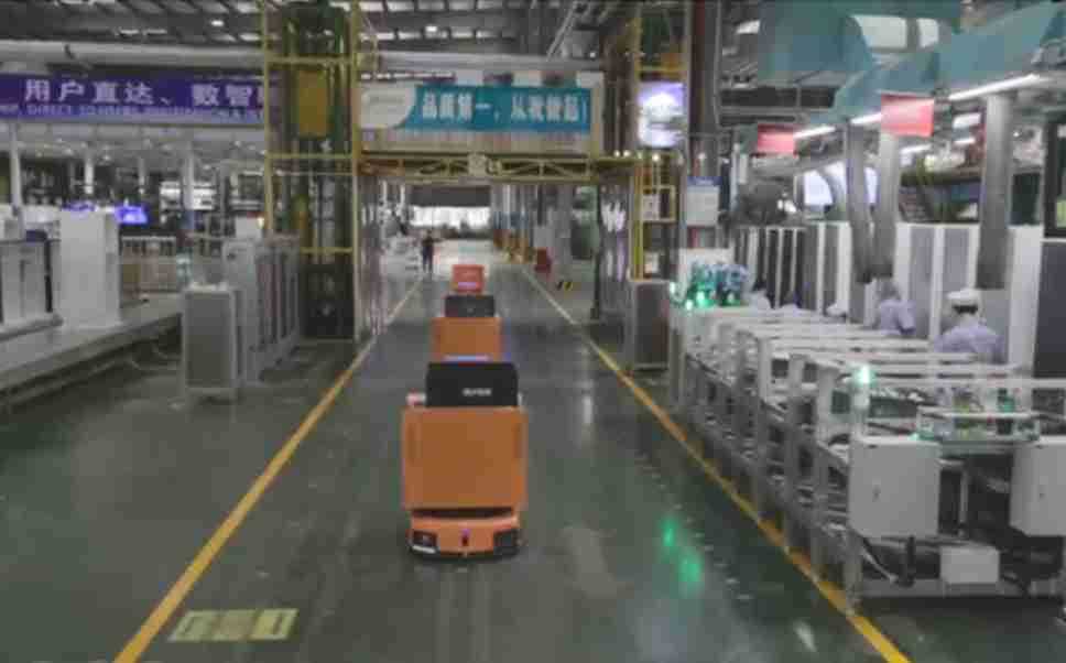 为车载冰箱物流配送打造的智能解决方案,,,,包含产中物流通过潜伏举升AMR搬运至线边,,,产后成品物流智能仓储,,流程包含产中物流智能齐套入库,,,,线边安灯叫料AMR智能配送至线边,,,,成品入库、、、、出库,,通过无人堆高车机器人,,,,智能仓储管理替代人工作业管理,,实现更高存储、、、、更高效率、、、更具柔性化的解决方案。。。。
