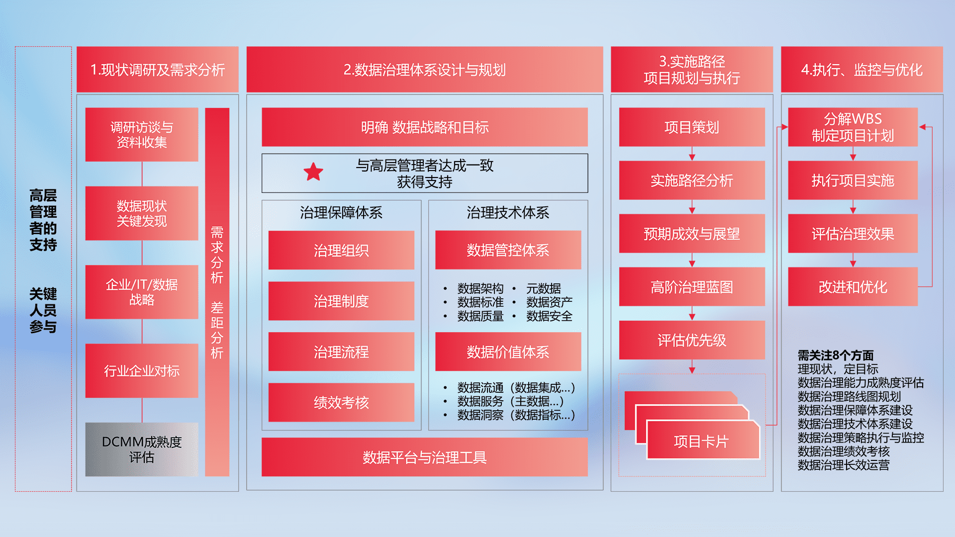 制定并执行统一的数据标准,,规范数据定义和格式,,,消除冗余和不一致性,,实现跨部门和跨系统的数据一致性,,,,为企业提供标准化的数据基础。。。
